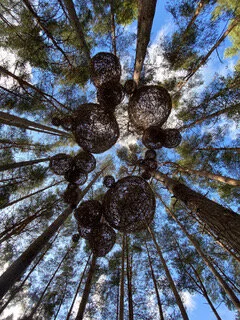 Belonging is about displacement. The balls, being willow are distinctly different from the nature they find themselves amongst.  For protection they swarm and huddle together.  Their attempt is to actually settle into the landscape, however, there is a tension and an awareness that they don’t quite belong,  They belong to nature,  but not to the nature surrounding them.